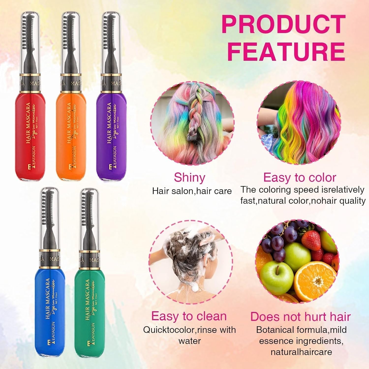 5 Farben temporäre Haarfarbe für Kinder, waschbar, gefärbtes Haar, Mascara, Haarkreide, Salon