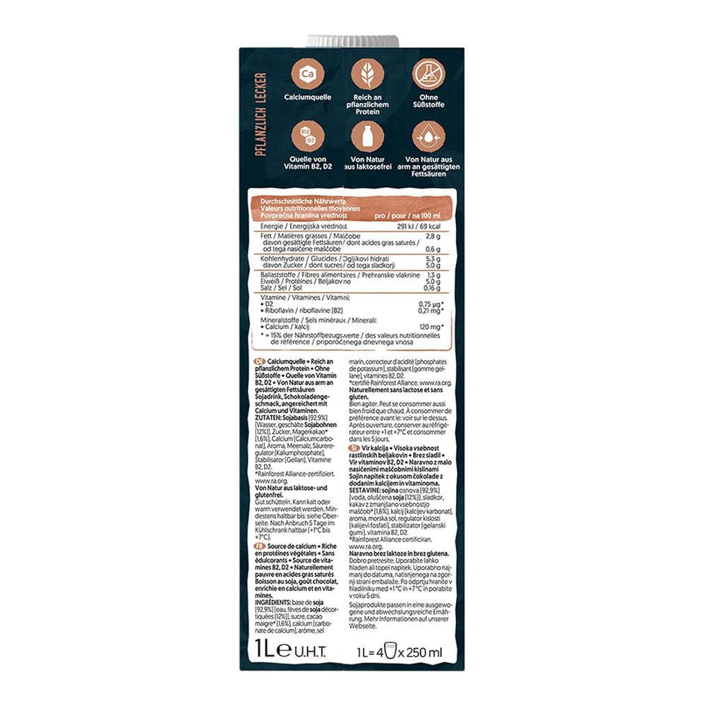 Alpro Proteindrink Soja Chocolate ist ein 100 % pflanzliches Proteingetränk, das sich an diejenigen richtet, die Milchprodukte meiden, aber eine reichhaltige Proteinzufuhr wünschen. Mit einem ausgewogenen Schokoladengeschmack und einer praktischen 8 x 1 L-Verpackung ist es die ideale Wahl für Frühstück, Snacks oder tägliche Smoothies.