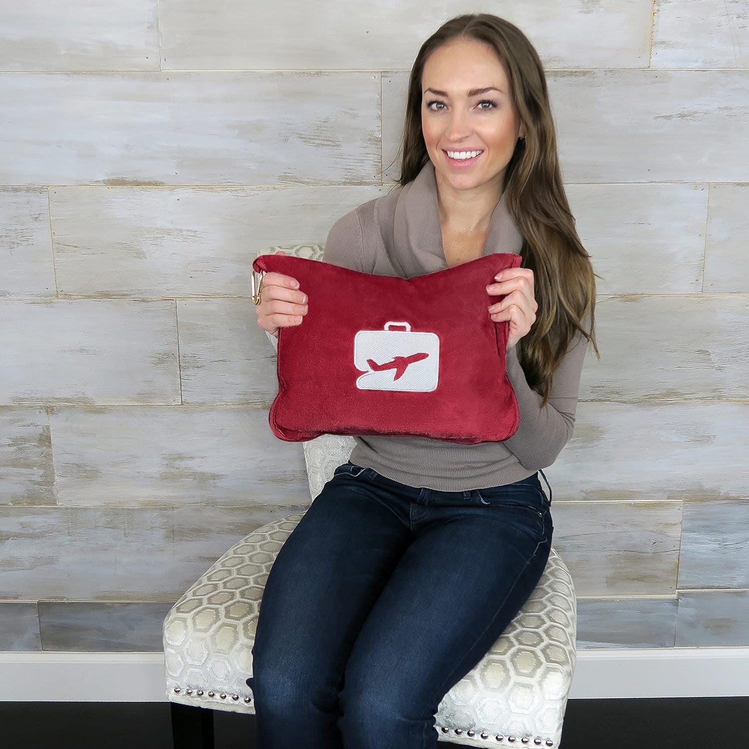 Eversnug Reisedecke und Kissen – weiche 2-in-1-Flugzeugdecke mit weichem Taschen-Kissenbezug, Handtaschenbezug und Rucksackhalter (Burgunderrot)