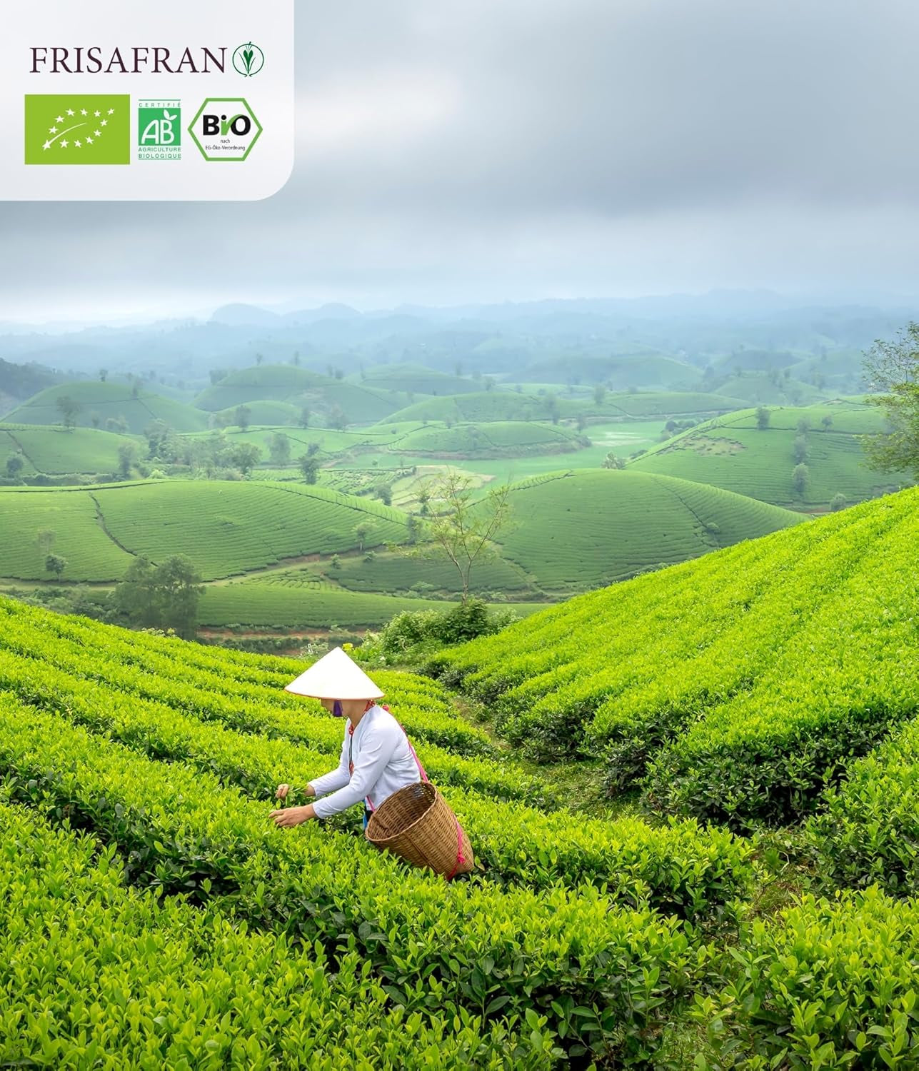 FRISAFRAN | Gunpowder Grüner Tee Bio-Minze Bulk 100G | Antioxidans | Japanischer grüner Tee | Verdauungs | Gesund | Erfrischungsgetränk | Minzaufguss | Reiner Tee Minzblätter | Heiß-Kühl | Minze
