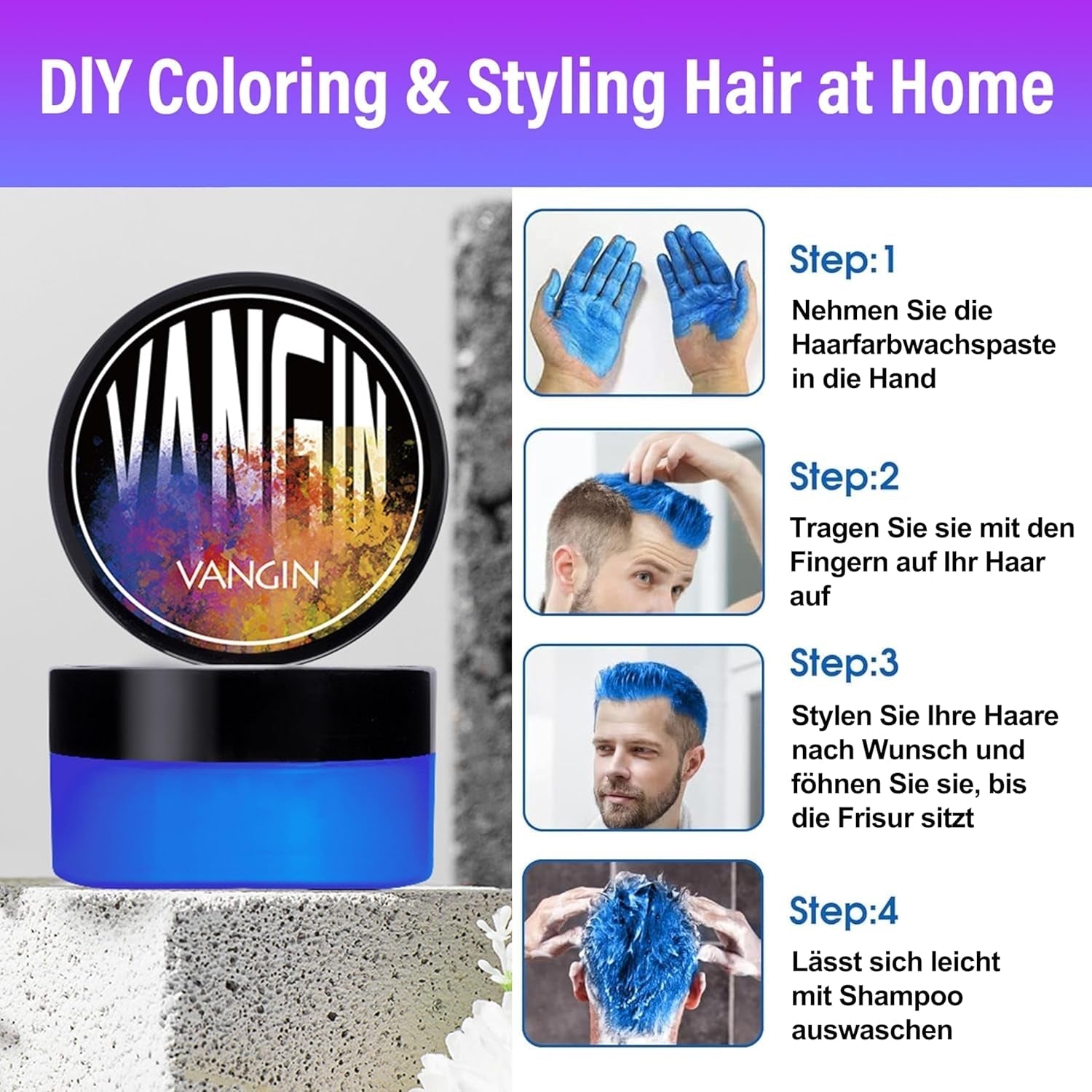 Mit unserem temporären Haarwachs können Sie Ihr Haar mühelos färben und stylen. Perfekt für Partys, Festivals, Cosplay oder den Alltag – einfach auftragen, stylen und mit Wasser abwaschen. Das Haarfärbewachs enthält natürliche Inhaltsstoffe, die das Haar nicht schädigen oder Reizungen verursachen. Erhältlich in verschiedenen Farben für einen individuellen Look.