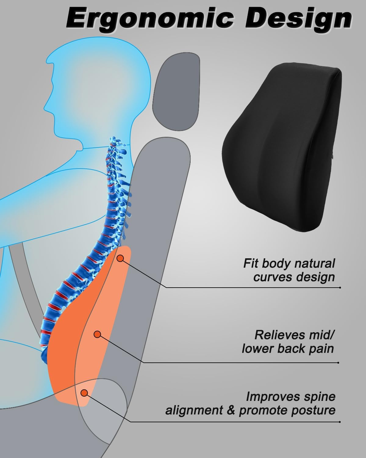 Lendenkissen Auto, Memory Foam Lendenwirbelstütze Auto, Ergonomisches Lendenkissen Auto, Rückenlehne zur Erleichterung des Rückenstützkissens für Autositze, Bürostuhl, Rollstuhl