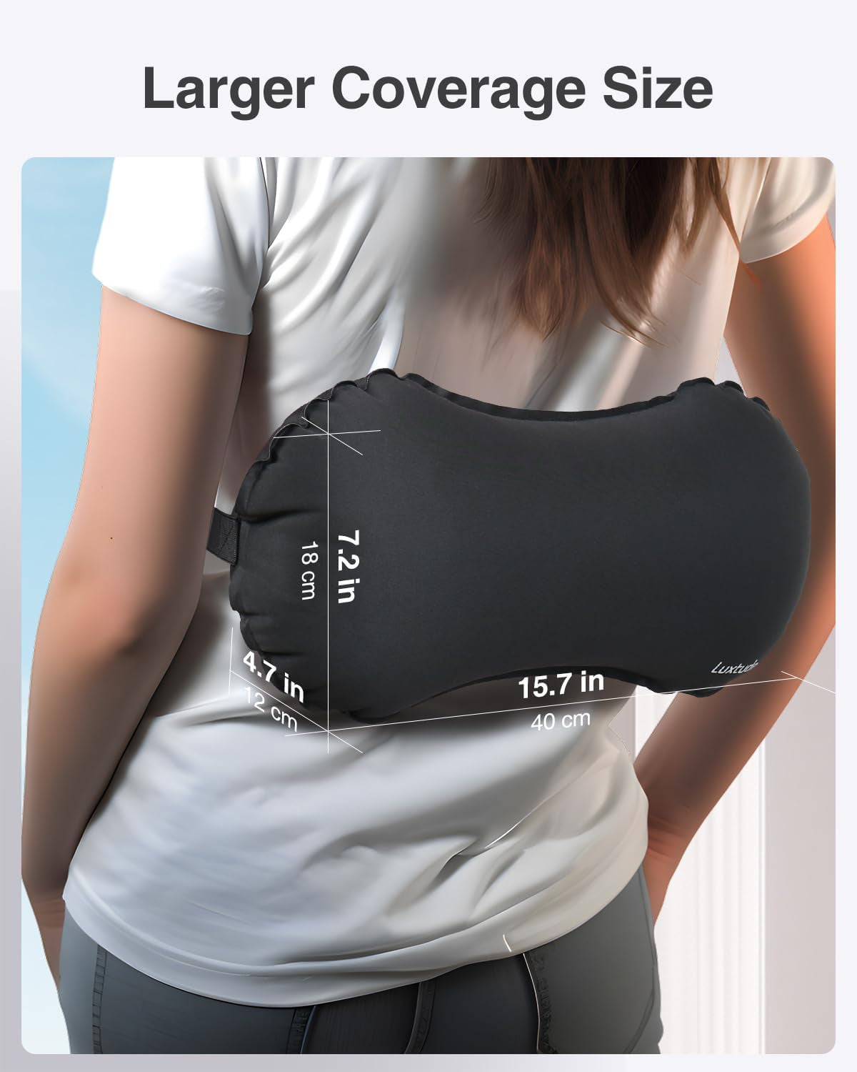 Luxtude Aufblasbares Lendenkissen, tragbares Lendenstützkissen für Flugzeug- und Autofahrten, aufblasbares Reisekissen, Rückenstützkissen, Nackenkissen, Kissen für den unteren Rücken
