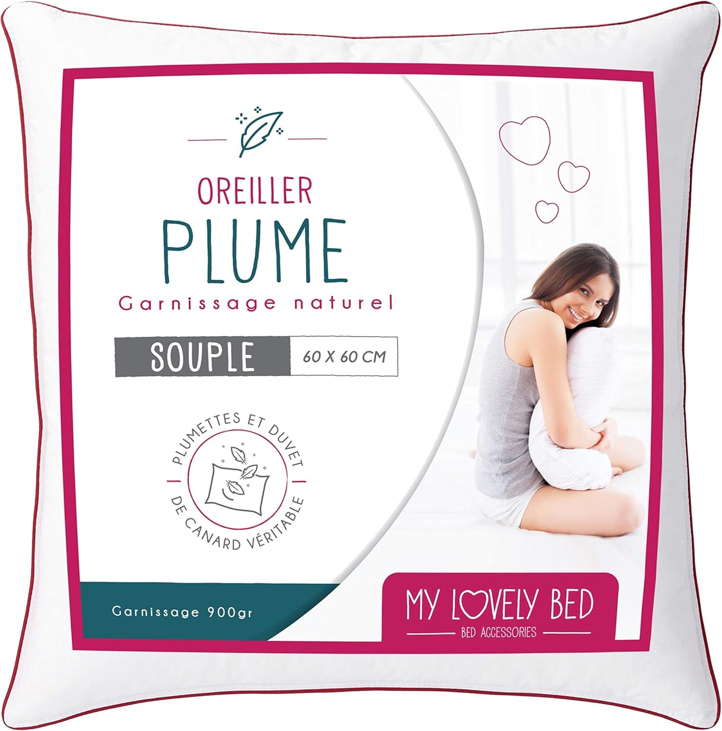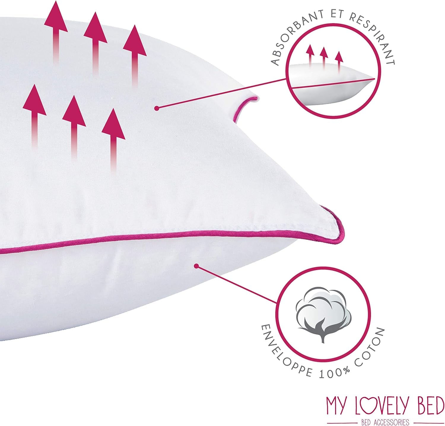Natürliches Kissen 50 x 70 cm – Füllung aus Federn und Daunen – Bezug aus 100 % Baumwolle – Flauschig und weich – Hohe Qualität – Ultra-Komfort – Rechteckig