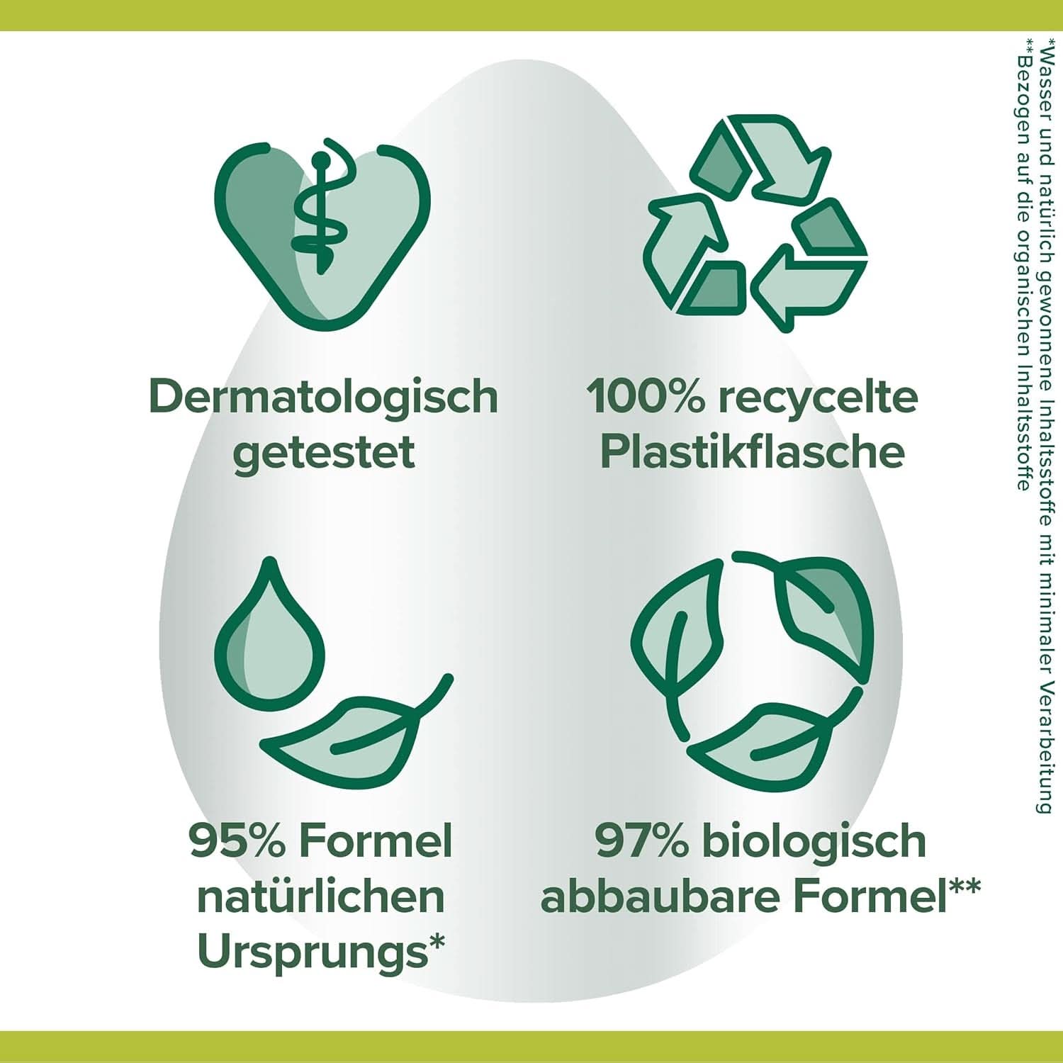 - Zu 97 % biologisch abbaubare Formel (basierend auf Bio-Zutaten)