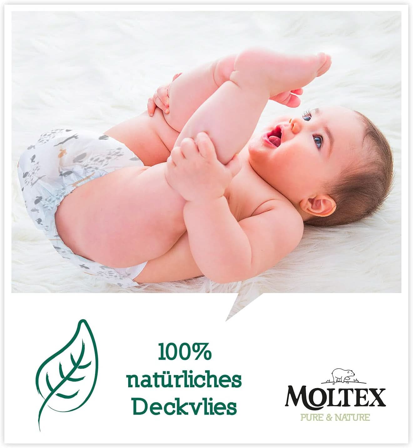 Moltex hat eine lange Tradition und wurde 1961 auf den Markt gebracht. Die Marke Moltex steht für zuverlässige und leistungsstarke Babypflegeprodukte, die sicher für Babys Haut und gleichzeitig besonders umweltfreundlich sind. Für unsere neue MoltexX Pure & Nature kommen ausschließlich modernste Produktions- und Qualitätskontrolltechnologien zum Einsatz und die Windeln werden ausschließlich in Deutschland mit 100 % grüner Energie hergestellt. Das neue Moltex Pure & Nature ist nicht nur besonders langlebig, sondern bietet auch Sicherheit und Komfort für die zarte Babyhaut. Der neue Moltex Pure & Nature verfügt über ein 100 % weiches und natürliches Innenvlies und ein superweiches Außenvlies aus Bio-Baumwolle. Zudem sind die Windeln besonders hautfreundlich und kommen ohne Naturlatex, Lotionen und Duftstoffe aus. Dank des verbesserten Kerns und der atmungsaktiven Materialien bietet der neue MOLTEX Pure & Nature bis zu 12 Stunden Schutz vor Auslaufen bei Tag und Nacht. MOLTEX Pure & Nature gibt es in sechs verschiedenen Größen mit entzückenden Tiermotiven, die die kleinen Windelhelden und ihre Eltern auf spannenden Abenteuern begleiten. Unterstützt werden die kleinen Lieblinge von der robusten und samtigen Windel, die besonders sanft zur zarten Babyhaut ist und für zusätzlichen Komfort sorgt. So macht das Entdecken Spaß.