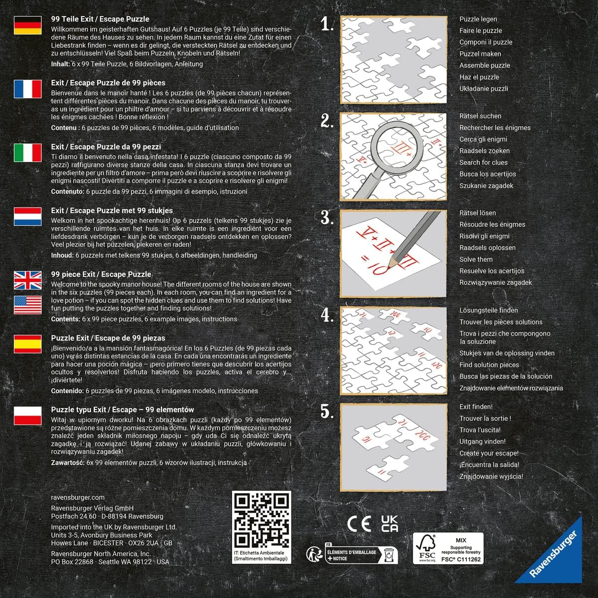 Ravensburger EXIT Puzzle – Das geisterhafte Herrenhaus – 6X 99-teiliges Puzzle für Puzzle-begeisterte Erwachsene und Kinder ab 10 Jahren