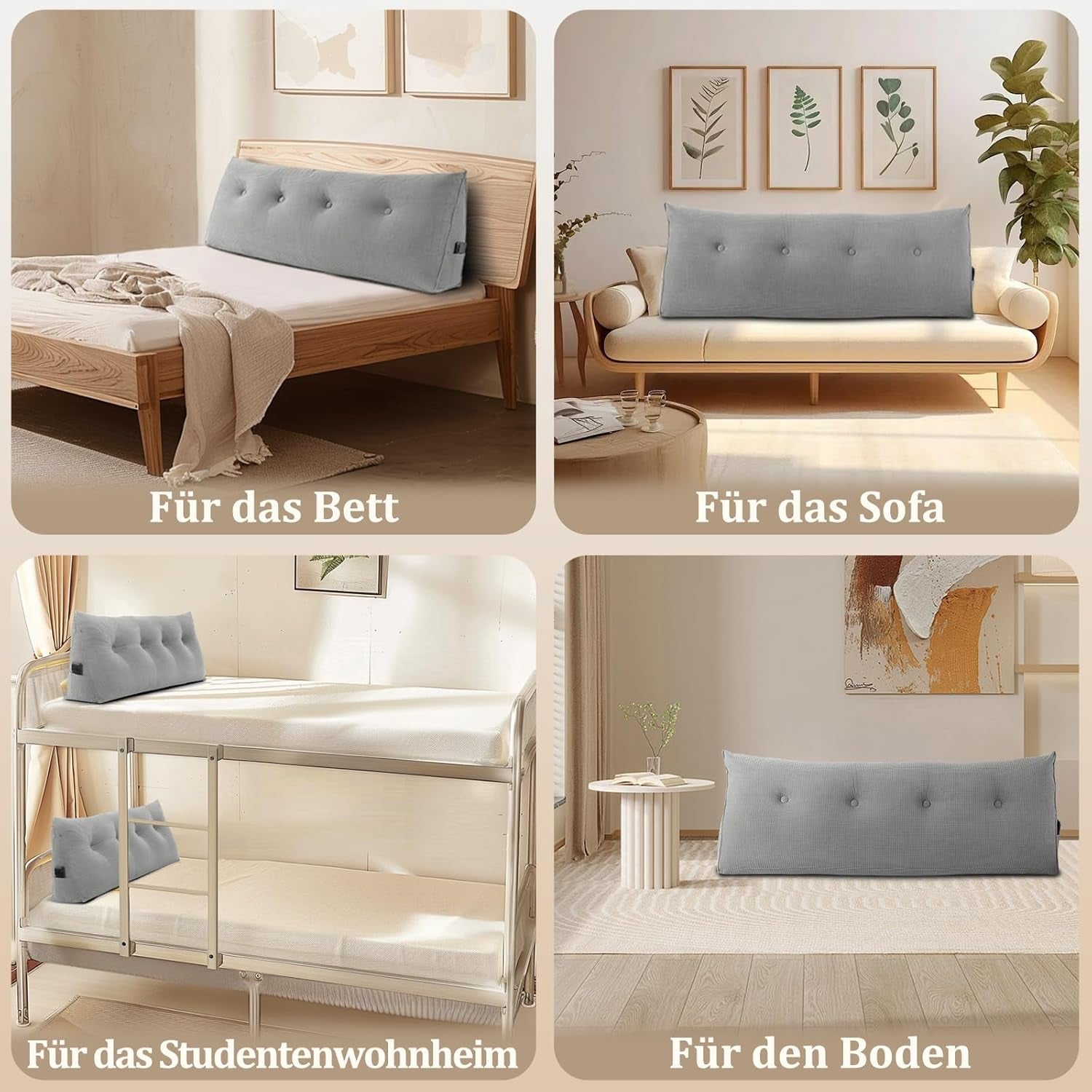 - Vielseitig, flexibel und praktisch: Dieses Bett mit Rückenkissen eignet sich nicht nur für Sofas, sondern auch ideal für jeden Ort, an dem Unterstützung benötigt wird. Ob im Wohnzimmer, Schlafzimmer oder Spielzimmer – Sie können sich jederzeit und überall auf das Bettkissen stützen und die weiche Unterstützung genießen, die es bietet, um Ihr Leben komfortabler und bequemer zu machen.
