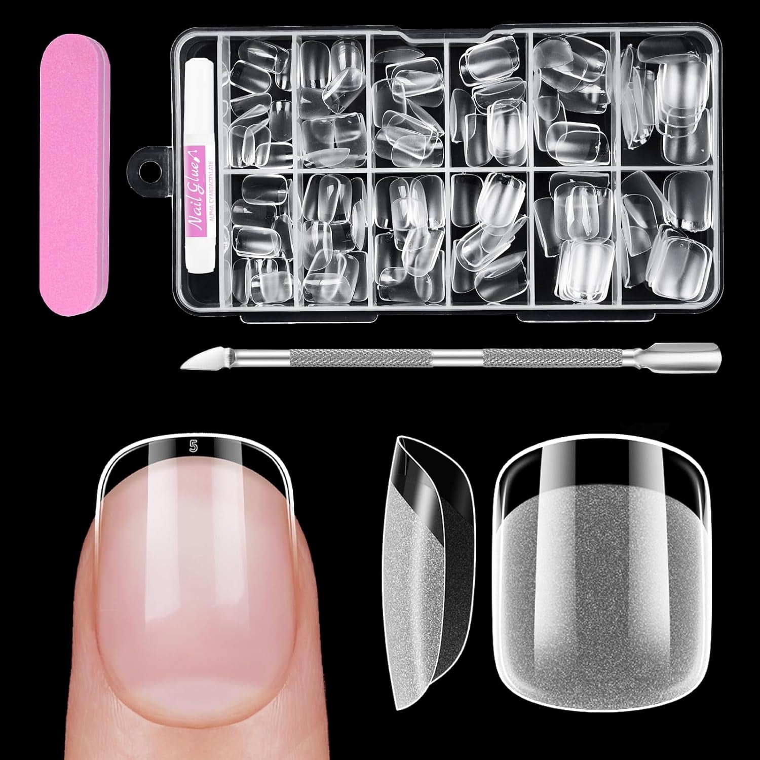 Venares Full Cover Nagelspitzen für kurze Gelnägel, 120 Stück, 12 Größen, kurze Nagelspitzen für Gelnägel, zum Aufkleben auf künstliche Nägel, Kleber, Nagelspitzen-Set, Feile, Nagelpolierer, Nagelhautschieber.